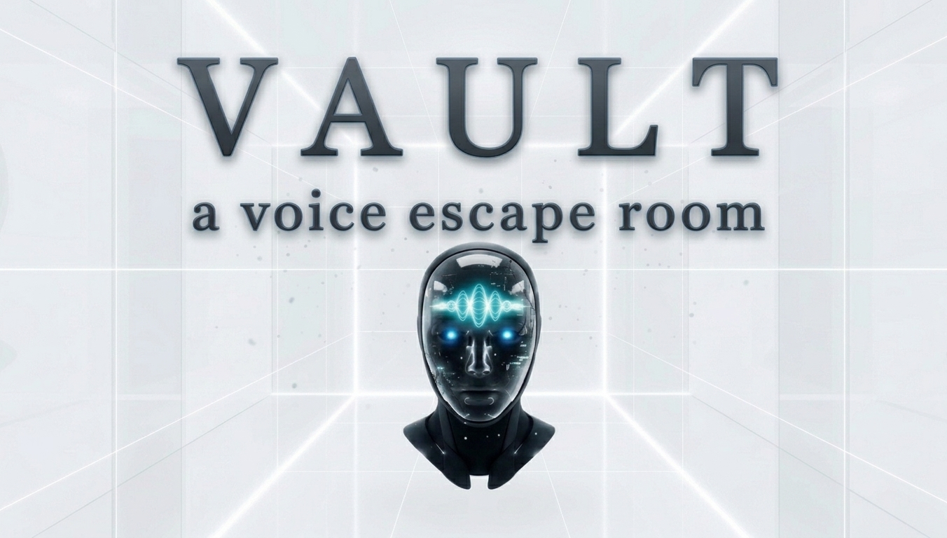 Vault: A Voice Escape Room. A concept. An experiment. A game. You are locked inside a glass vault. The walls are already moving. There are no buttons, no UI, only the Vault Guardian, a live ElevenLabs voice agent that protects the vault. Your voice is the key. It speaks a riddle. You answer out loud. Convince the Guardian you've earned it, and the vault shatters open. Fail, and the walls seal you in. Try it solo, or bring a friend in co-op. In co-op, the puzzle splits in two. Each player gets their own Guardian in a separate live conversation, each holding one word of the answer. Neither of you knows what the other was told. You have to piece it together, and solve both halves before the walls close on you both. Built on ElevenLabs Conversational AI for live, real-time voice agents. Cloudflare Durable Objects power the vault itself, a shared game server at the edge, owning the wall state, the timer, and keeping both players perfectly in sync. Your voice got you in. Now use it to get out. You have 100 seconds to live.