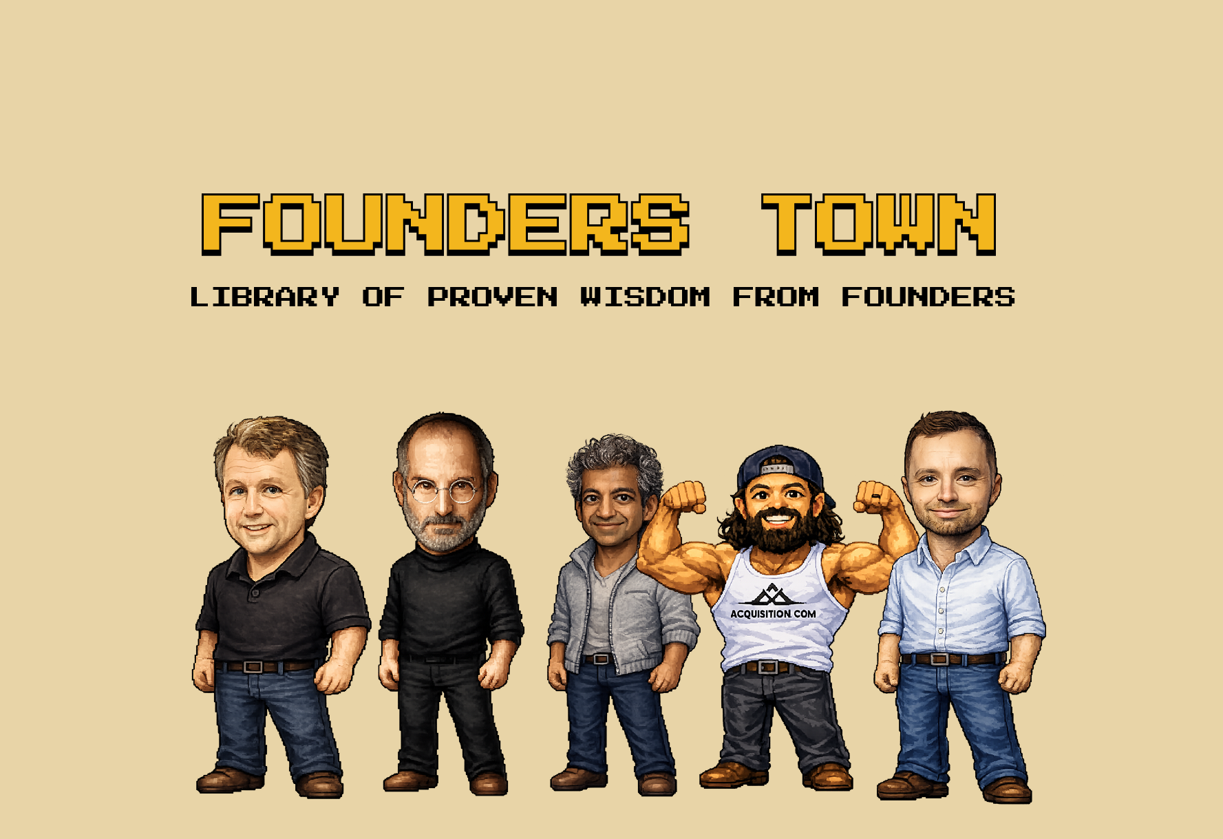 Founders Town is a living AI world where you can have real voice conversations with the greatest entrepreneurial minds — Naval Ravikant, Paul Graham, Alex Hormozi, David Senra, and Steve Jobs. Call any founder one-on-one in their cloned voice, powered by ElevenLabs Conversational AI. Or use the Town Square — ask a question and watch all five founders debate it in real time, each responding to the previous, drawing from their actual books, essays, and podcasts. Every answer is grounded in real knowledge using RAG — 4,496 chunks of source material stored in Cloudflare Vectorize, retrieved semantically at call time. Each founder is a persistent Cloudflare Durable Object with their own memory, personality, and relationships. The World Engine runs on Durable Object Alarms, keeping the town alive autonomously. ElevenLabs: Conversational AI for real-time voice calls with sub-second latency. Voice cloning to give each founder their actual voice. Cloudflare: Workers for the API layer. Durable Objects as persistent stateful agents — one per founder. Vectorize as the vector database. Workers AI for embeddings. Built for people who want to learn from the greats — not just read their books, but talk to them. Built for ElevenLabs × Cloudflare Hack #2. Voices are AI-generated for educational and research purposes only.