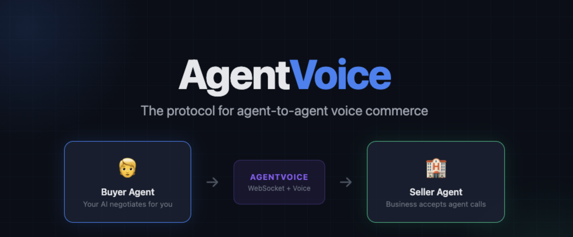 AgentVoice — The protocol for agent-to-agent voice commerce. Every AI company is building agents that talk to humans. Nobody has built the infrastructure for agents to talk to each other. AgentVoice is that missing layer — an open SDK and protocol that lets any AI agent negotiate with any other AI agent via voice, in real-time. The problem: AI agents can browse the web, send emails, and call APIs — but they can't pick up the phone and negotiate with another agent. A travel agent AI can't call a hotel's AI to haggle on price. There's no protocol for agent-to-agent voice communication. What we built: An SDK where a business deploys an AgentVoice server in 20 lines of code to accept agent calls, and a buyer deploys a client in 10 lines to negotiate. Two agents connect via WebSocket, authenticate, and negotiate using a structured protocol (handshake → offer → counter → accept) with real voice on top. The demo shows hotel booking, restaurant reservation, and freelancer hiring — three different negotiation patterns, one protocol. How we use ElevenLabs: - Conversational AI Agents — Both the buyer and seller are ElevenLabs agents powered by Gemini 2.0 Flash Lite, each with a distinct voice personality. They reason and respond dynamically — every conversation is different. - Voice Bridge — Our breakthrough feature. ElevenLabs agents are designed to talk to humans. We built a bridge that connects two agents to each other via their WebSocket API, relaying text between them while streaming voice audio to the browser. Two AIs negotiate live and you hear both sides. - Text-to-Speech — eleven_multilingual_v2 generates voice for the structured negotiation protocol, giving each agent a unique identity. - Transfer-to-Number — When an agent can't handle a negotiation, it escalates to a human manager via ElevenLabs + Twilio phone integration. - Outbound Calling — The hotel agent can call a real phone number and negotiate with a human live. How we use Cloudflare: - Workers — The API layer and WebSocket bridge run on Cloudflare Workers, deployed globally in 300+ cities. One wrangler deploy and the protocol is live worldwide. - Durable Objects — Each negotiation session is a Durable Object — a stateful, short-lived object at the edge. Session state (offers, counters, terms) persists without a database. This is the programming model that matches the problem: 1 negotiation = 1 Durable Object. - WebSocket on Workers — The live agent bridge runs as a WebSocket endpoint on the Worker, connecting to two ElevenLabs agents and coordinating turn-taking between them. - Static Assets — The demo page is served directly from the Worker.
