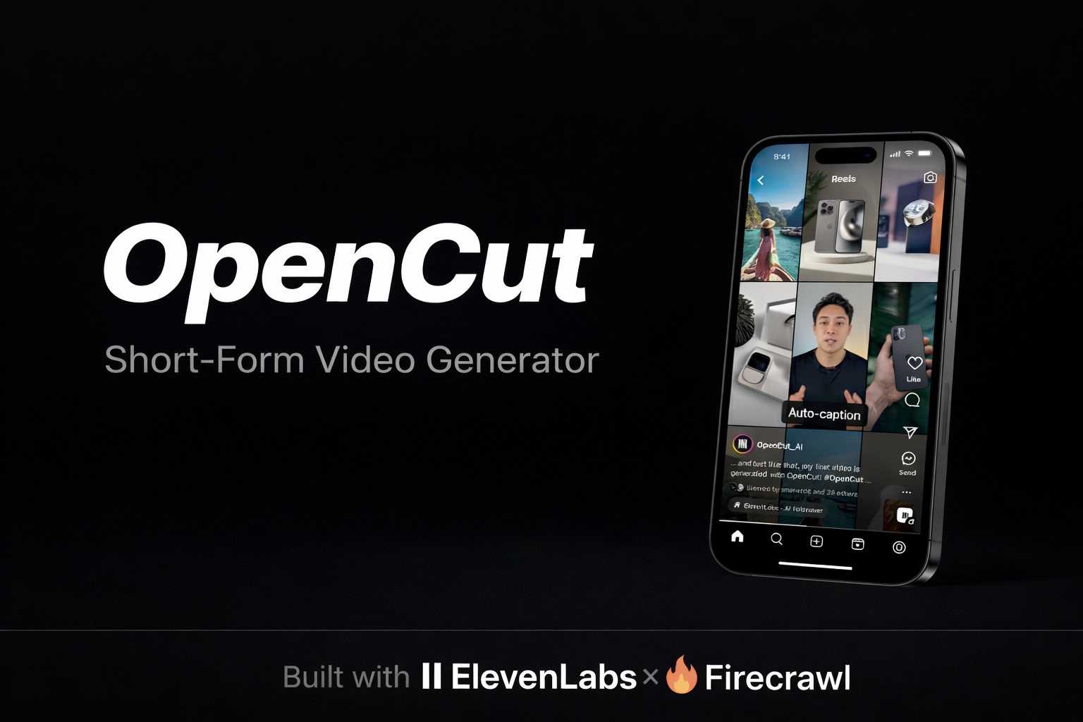 OpenCut is an AI-powered short-form video generation platform that turns any topic into a complete, ready-to-post video in minutes. Creating short-form content today requires juggling multiple tools for research, scripting, voiceover, and editing. OpenCut collapses all of that into a single prompt. Firecrawl powers the research agent, which crawls the web and pulls fresh, relevant information about the topic. That research is then structured into a video script, ElevenLabs generates a natural-sounding voiceover from it, and the video agent assembles the audio and visuals into a final video that the user can preview live and download directly from the platform.