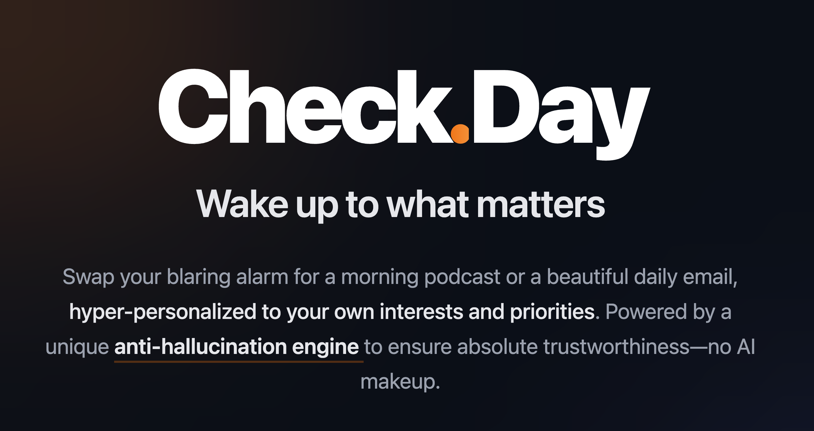 Check.Day cures mindless morning doomscrolling by replacing your blaring alarm with a hyper-personalized, source-verified morning digest (interests, tracking competitors, stocks, weather, news) delivered as a studio-quality commute podcast or fast-reading email. Firecrawl: Powers our concurrent Advanced Hub and Competitor crawlers. Instead of generic AI web searches, our backend uses the Scraping API to target specific discussion forums and official company changelogs, extracting clean markdown of only verified announcements and top discussions from the last 24-48 hours. ElevenLabs: Powers two distinct flows! First, we use ElevenLabs Agents for an interactive, conversational onboarding flow to help users seamlessly configure their digest profile. Second, we use the Text-to-Speech API to dynamically synthesize these dense, researched text digests into a natural, studio-quality daily podcast engineered for the morning commute. So what is our proprietary spice blend that makes Check.Day so good? The Anti-Hallucination Engine: Instead of a single, easily confused LLM prompt, our Elixir backend uses highly concurrent background workers (Task.async_stream) to route topics to hardened retrieval pipelines. We force the AI to summarize strict data payloads (combining Firecrawl markdown, exact integers from Open-Meteo JSONs, and live Yahoo Finance feeds)—drastically minimizing hallucinations and exposing the direct source links for every single claim. ❤️ Open-Source Impact: Because we built this highly-concurrent backend in Elixir, we authored and published brand-new open-source Elixir SDK packages for both ElevenLabs and Firecrawl for the broader developer community to use!