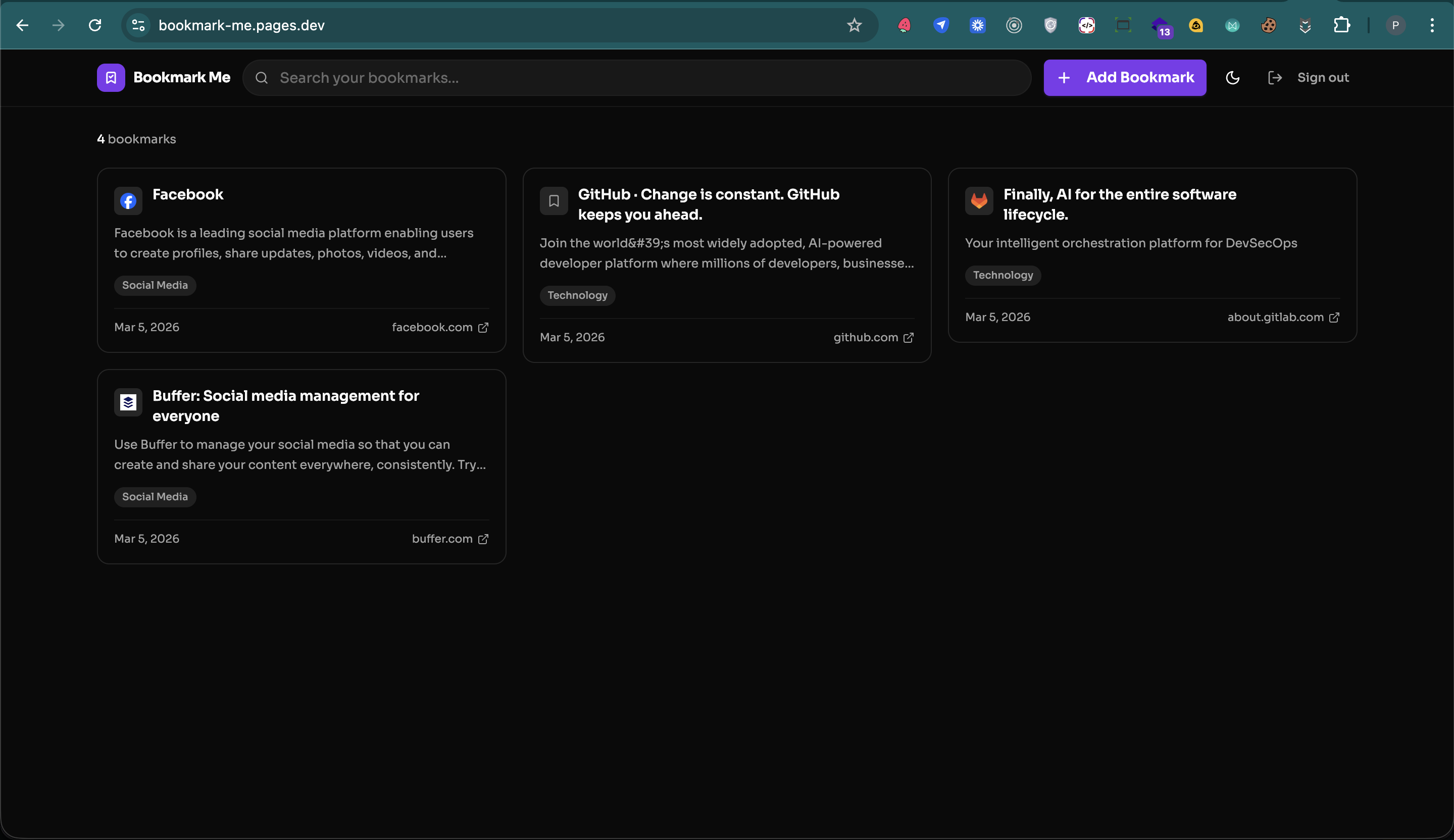 Bookmark Me is a smart bookmarking tool that lets users save and organize website links while enabling powerful semantic search across their collection. Instead of relying on exact keywords, it understands the context and meaning of saved content, allowing users to quickly find relevant links even with vague or natural language queries. Designed for efficiency, it helps users manage knowledge, research, and resources in a more intuitive and intelligent way.