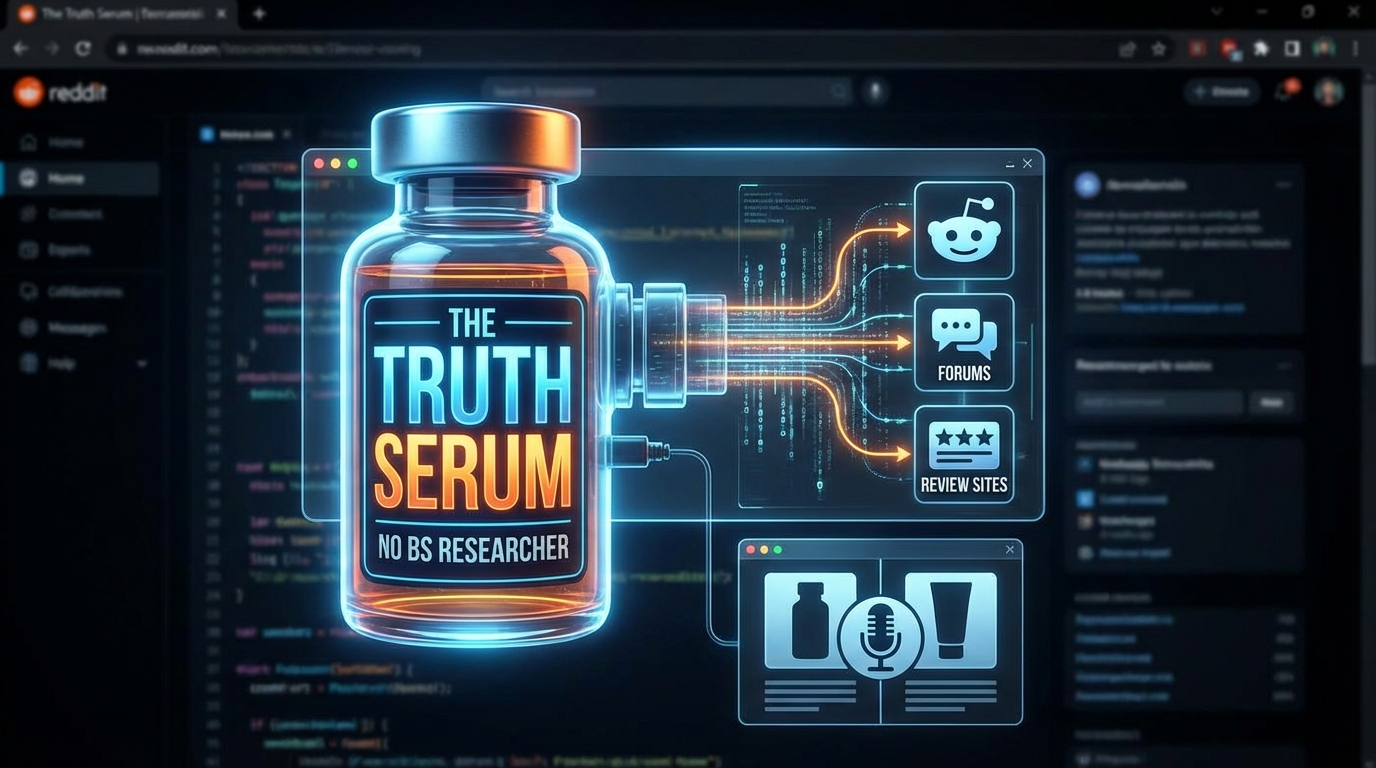 Truth Serum is an honest AI product research tool that cuts through marketing noise and tells you what real people actually think. You ask about any product, brand, or trend — by voice or text — and Truth Serum searches Reddit, review sites, and the broader web via Firecrawl, then runs the scraped evidence through Gemini to produce a structured verdict: a truth score, verdict tier (Legit / Mixed / Sketchy), pros and cons grounded in real user quotes, and a side-by-side breakdown of what the marketing says versus what users actually experience. The voice mode is powered by an ElevenLabs Conversational AI agent — a sardonic, cynical character called "The Truth Serum" who has a noir detective personality and zero tolerance for corporate fluff. While the agent speaks, the UI simultaneously generates a visual verdict card in parallel using the same backend pipeline, so you get the spoken breakdown and the data visualization at the same time. You can ask a single question ("Is the Dyson Airwrap worth it?"), run a comparison ("ChatGPT Pro vs Claude Pro"), or paste a product URL directly — the app scrapes the page and then layers in external sentiment from forums and reviews on top. Every result shows exactly where the data came from, how many sources were analyzed, and which tier of the search pipeline found the signal.
